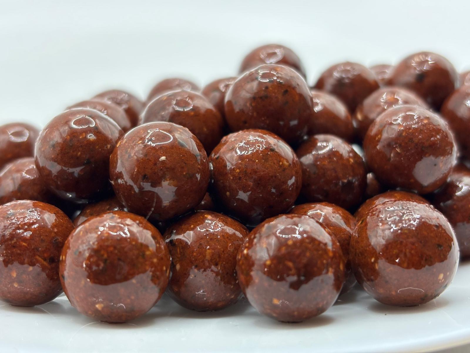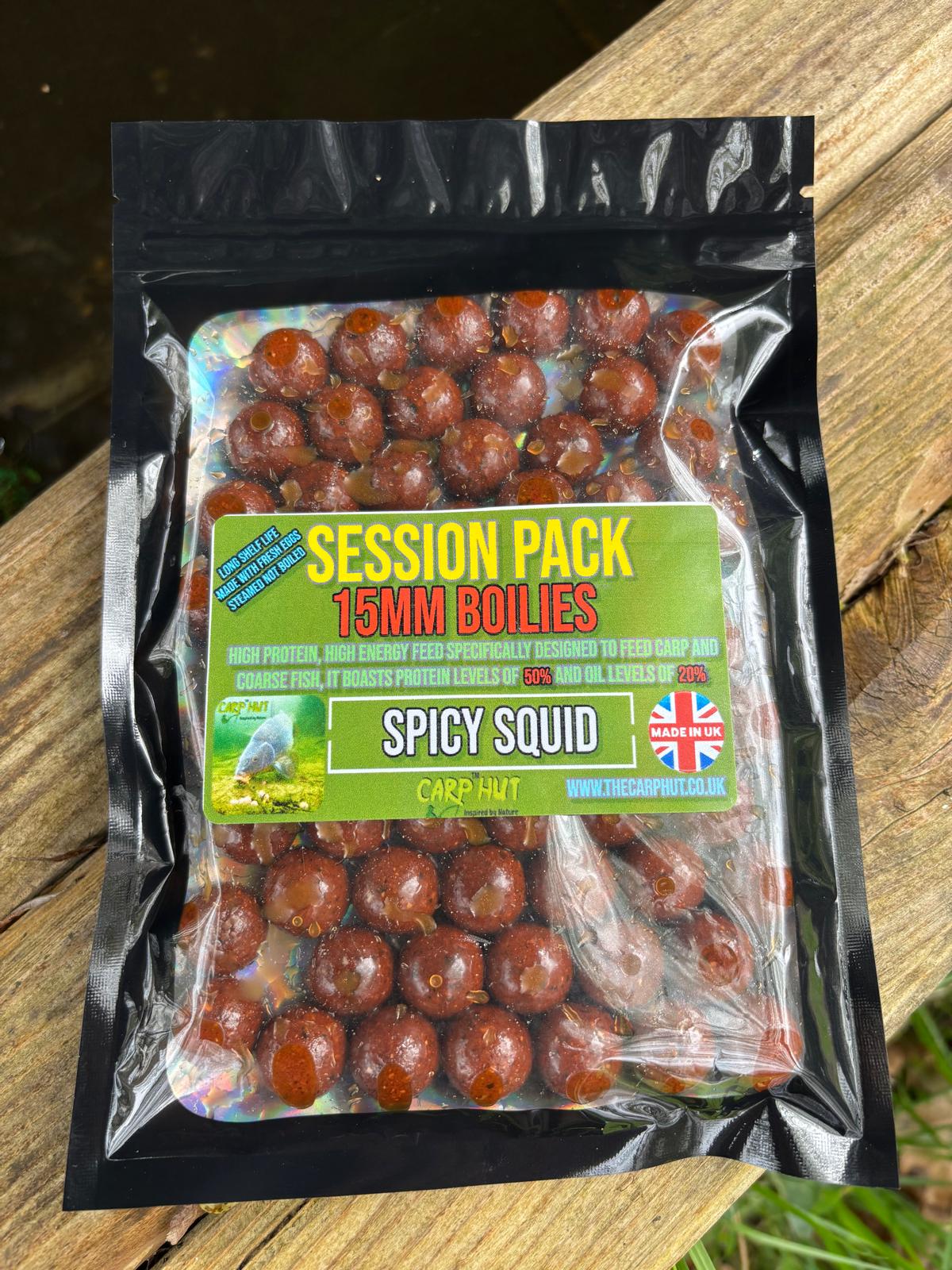 Try the Carp Huts new range of STEAMED boilies in a fantastic tantalizing SPICY SQUID & GARLIC flavour, secretly field tested by our team this is THE big fish catcher. The unique blend of the very best fishmeal, infused Natural Squid Hydro, LT and PDFM, combined with milk proteins, Robin Red, bird food, Kelp, fibres, spices, garlic and salmon oil.